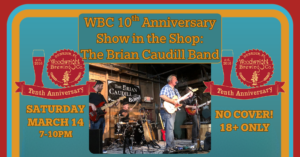 Celebrate our brewery’s 10th anniversary with The Brian Caudill Band and our entire Woodwright Crew! We’re so looking forward to partying with all our friends and a great Show In The Shop! No cover!